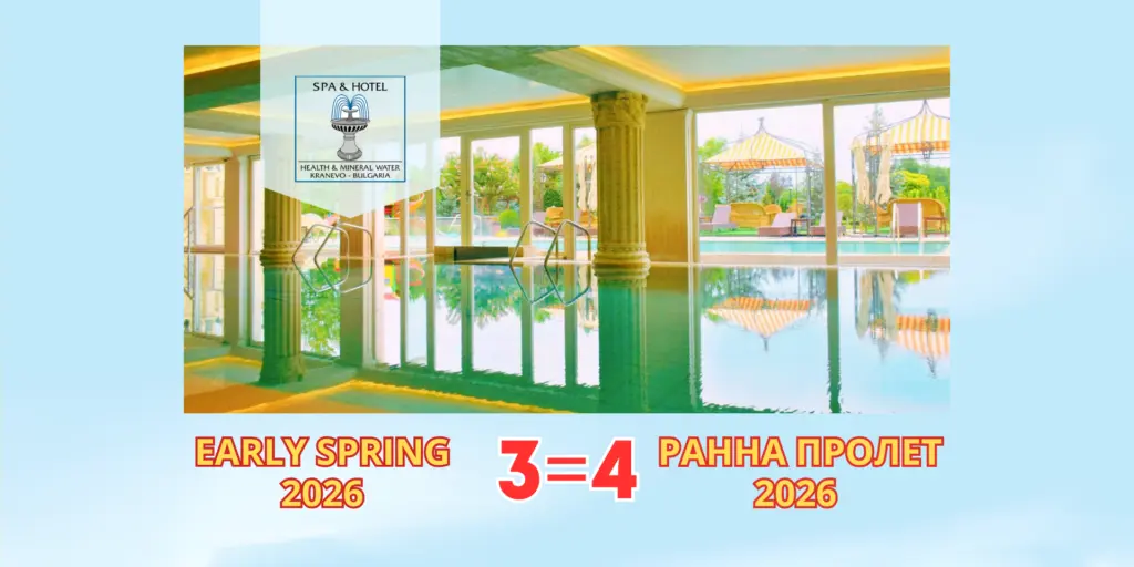 Безплатна нощувка в хотел Therma Palace – Кранево. Оферта 3=4 Резервирайте 3 нощувки, а ние ще ви подарим още 1 напълно безплатно! Офертата важи за настаняване от неделя до четвъртък включително за период от 11.01.26 до 26.03.26г. Подарете си пълен релакс и здраве с нашето специално предложение! Офертата включва: ⚜️Настаняване в луксозна стая. ⚜️СПА […]