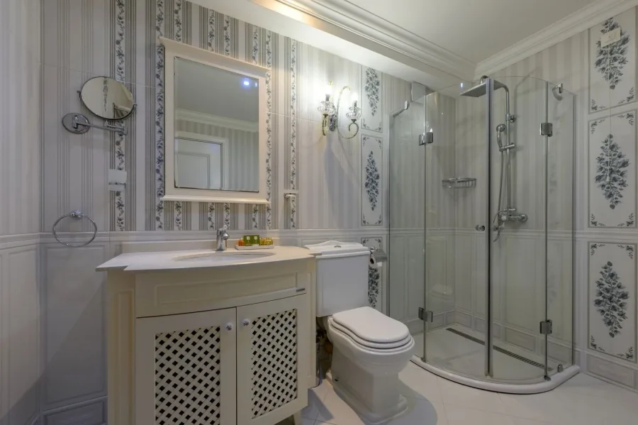Guests are provided with hotel cosmetics, bathrobes, and slippers.